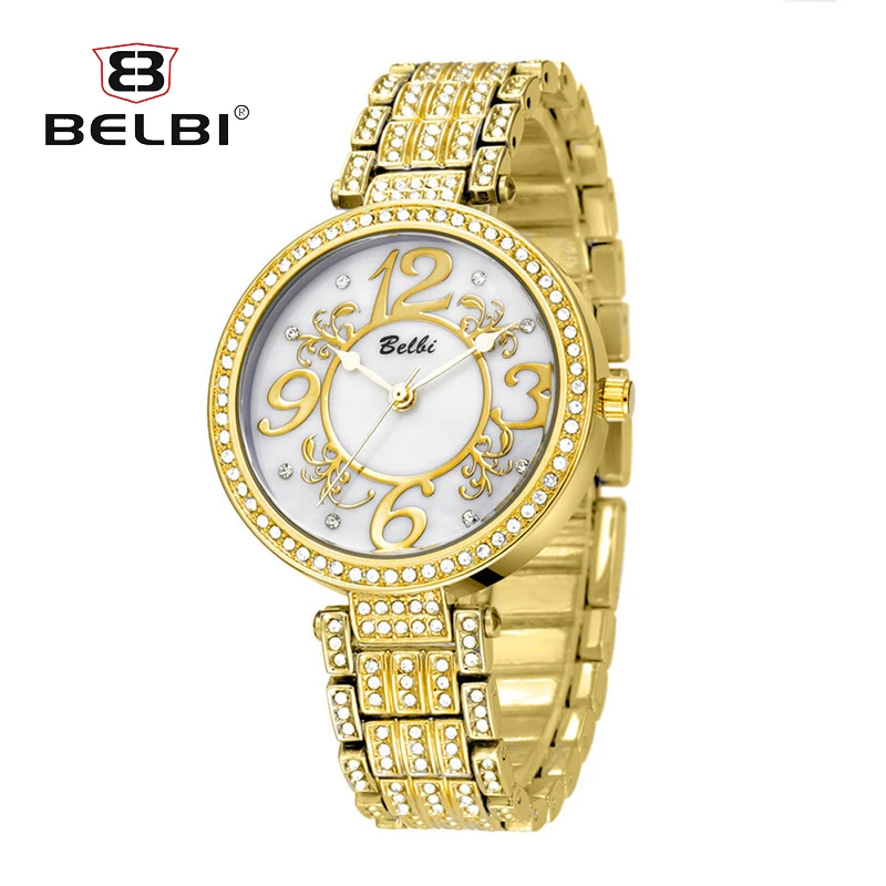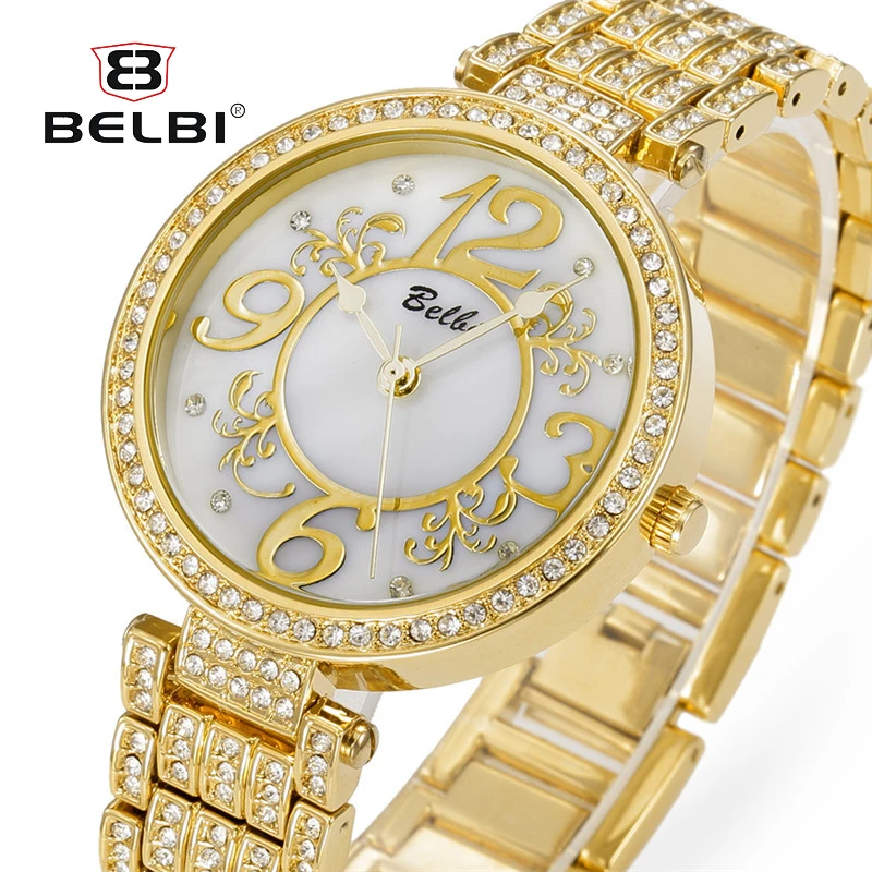 Hot Sale BELBI Luxury Brand Women's Watches Diamond Face Gold Rhinestone Alloy Watchbands Ladies Design Patt