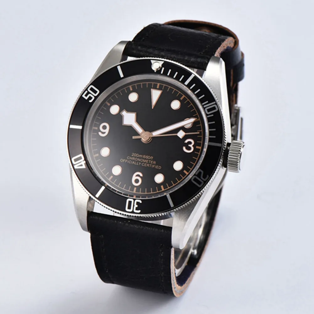 41mm Sterile Dial rosegold Marks watch men Sapphire Glass relogio masculino Black Bezel Mens Automa