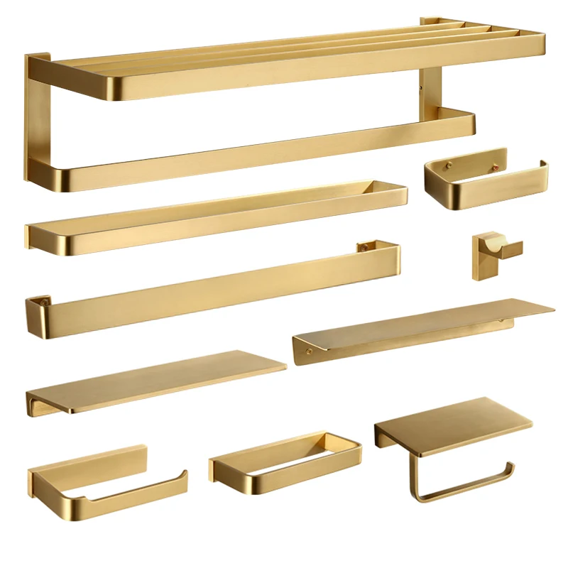 BEST QUALITY Bathroom Hardware Set Towel Rack Paper Holder Towel Bar Corner Shelf Toilet Brush holder Brushed Go
