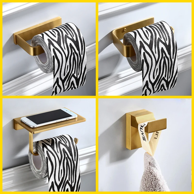 Bathroom Hardware Set Towel Rack Paper Holder Towel Bar Corner Shelf Toilet Brush holder Brushed Go