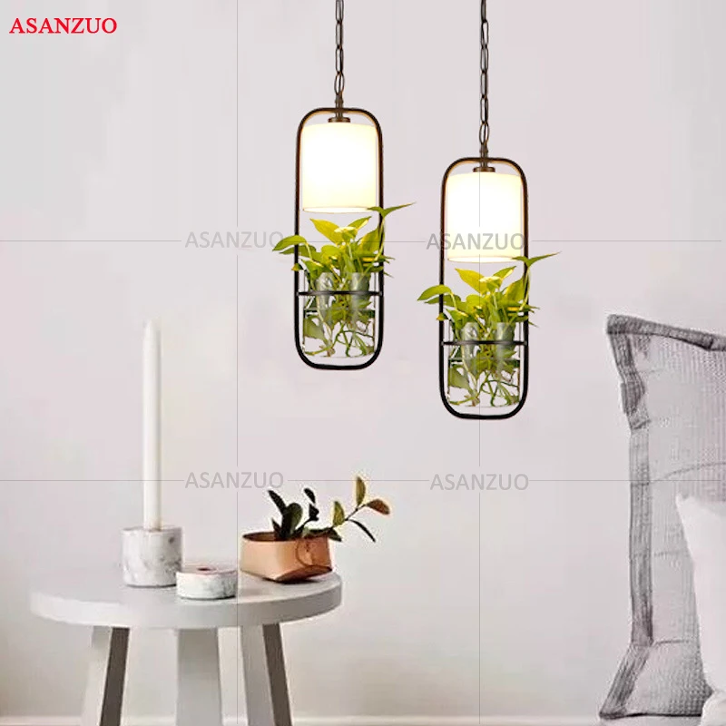 Best Seller Modern black cage pendant lights iron Glass Cloth lampshade droplight E14 loft hanging Lamp Plant p