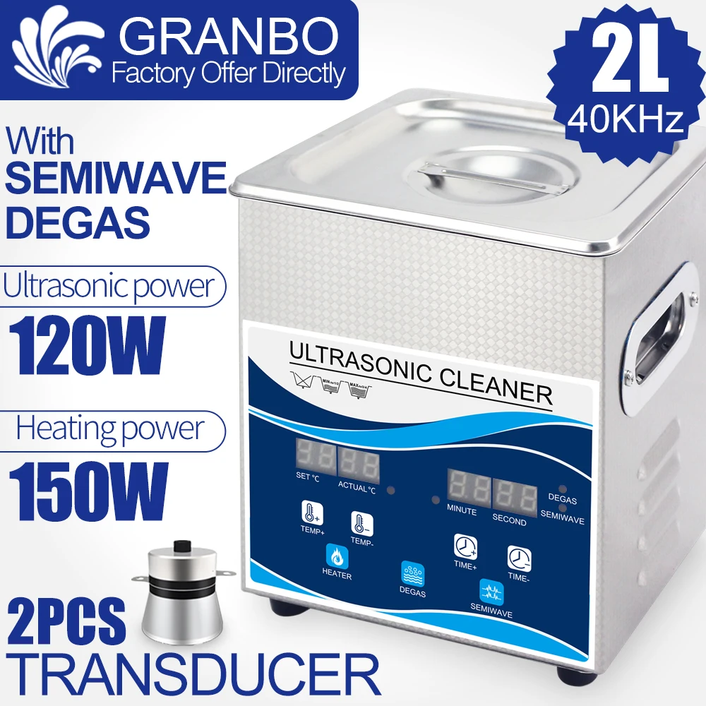 HOT Sale Ultrasonic Cleaner 2L 120W Digital Degas 110V/220V 40khz Remove Oil Rust Nozzle Hardware Optical Le
