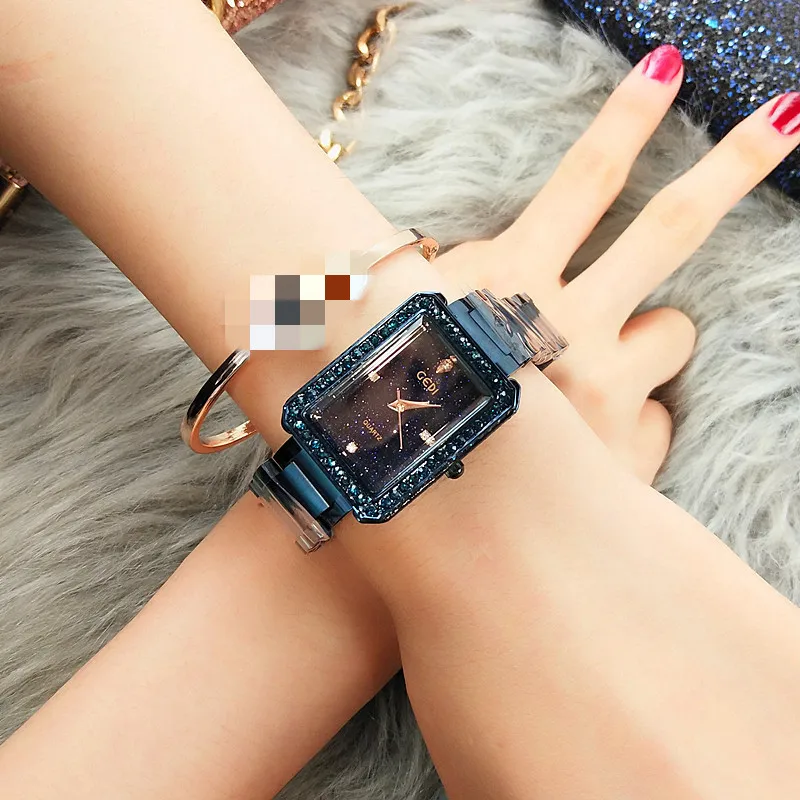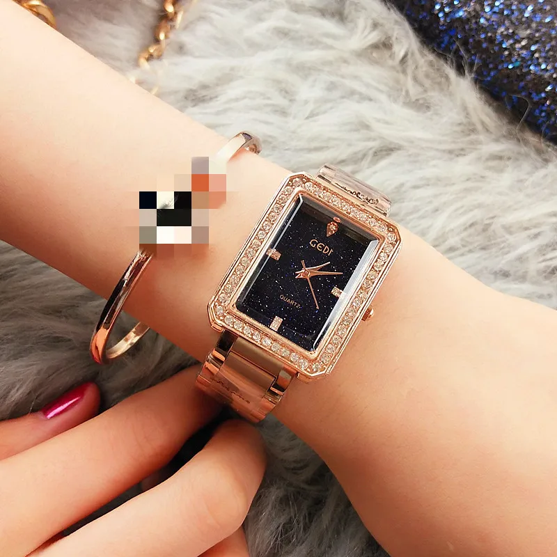Luxury Ladies Quartz Tide Watch Waterproof Fashion Square Full Diamond Steel Belt Star Surface With