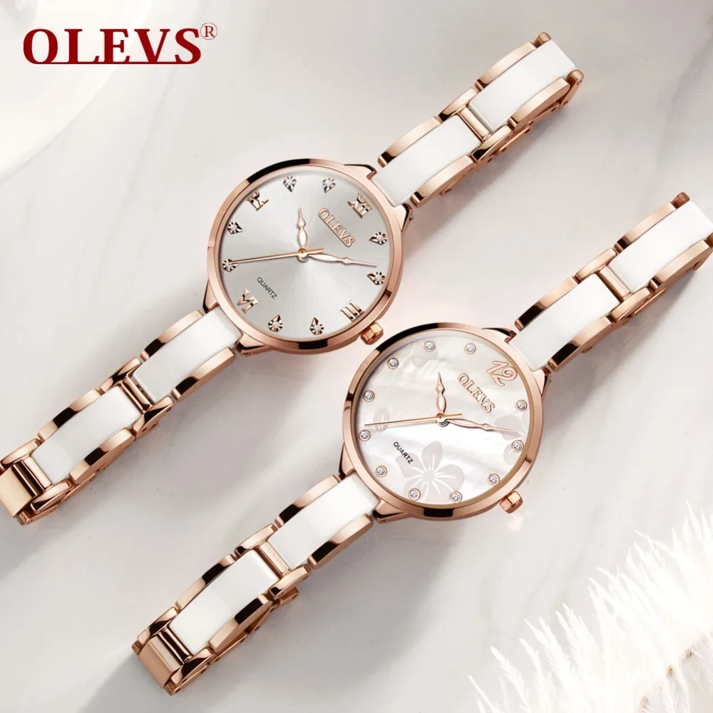 TOP OLEVS Women Watches Luxury Rose Gold Fashion Crystal waterproof Ceramics Dress Diamonds ladies watc