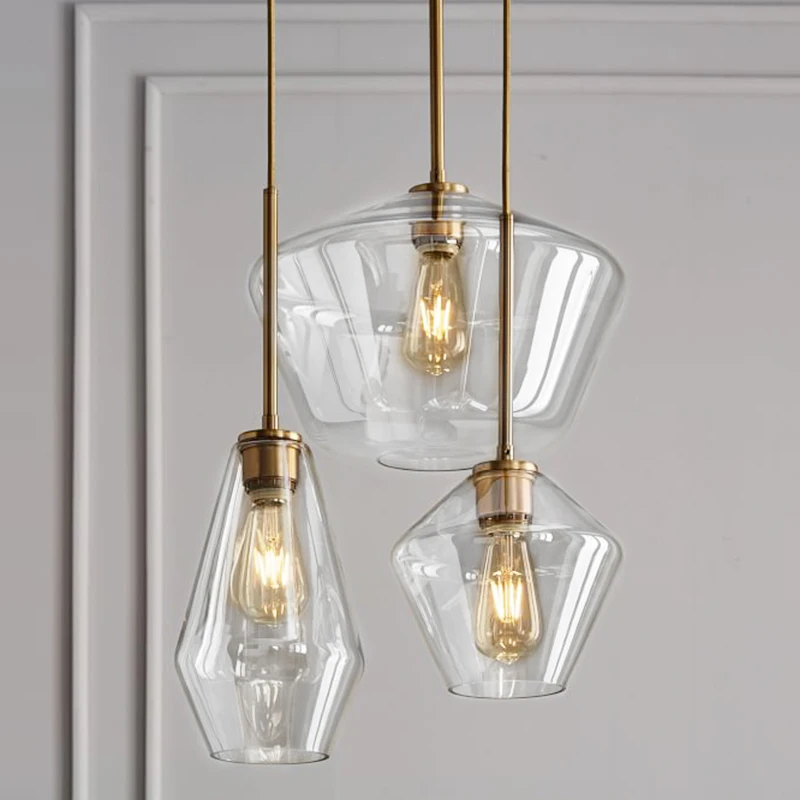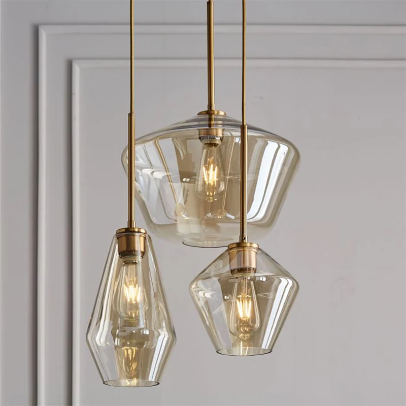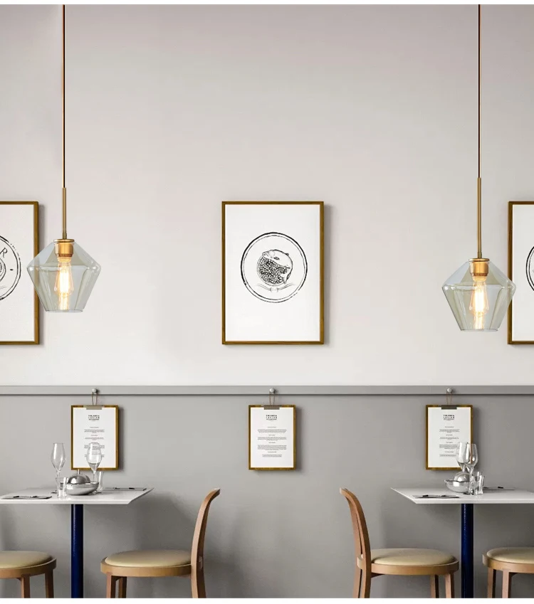 Best Seller LukLoy Post Modern Glass Pendant Light Stainless Steel Diamond Shape Kitchen Hanging Lamp Loft Hang