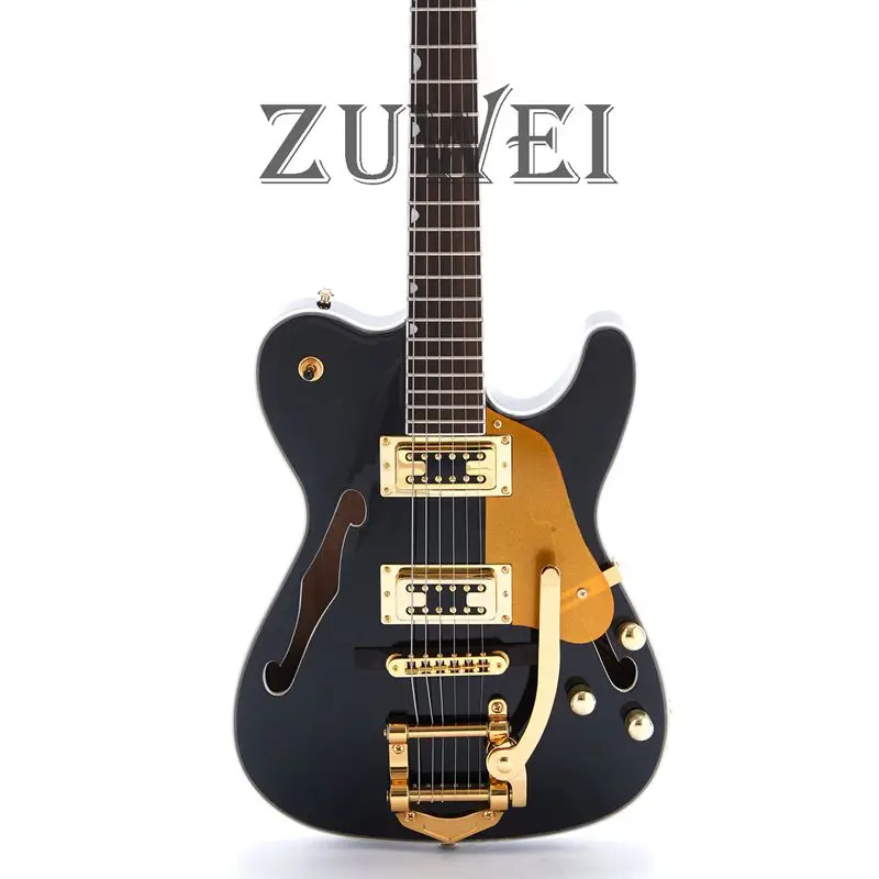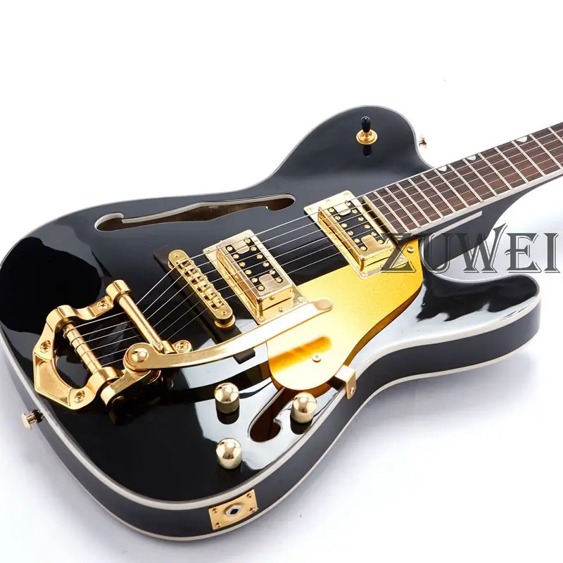 Custom Shop Semi Hollow Body TL Electric Guitar Bigsby Bridge Gold Hardware Set In Joint Black Colo